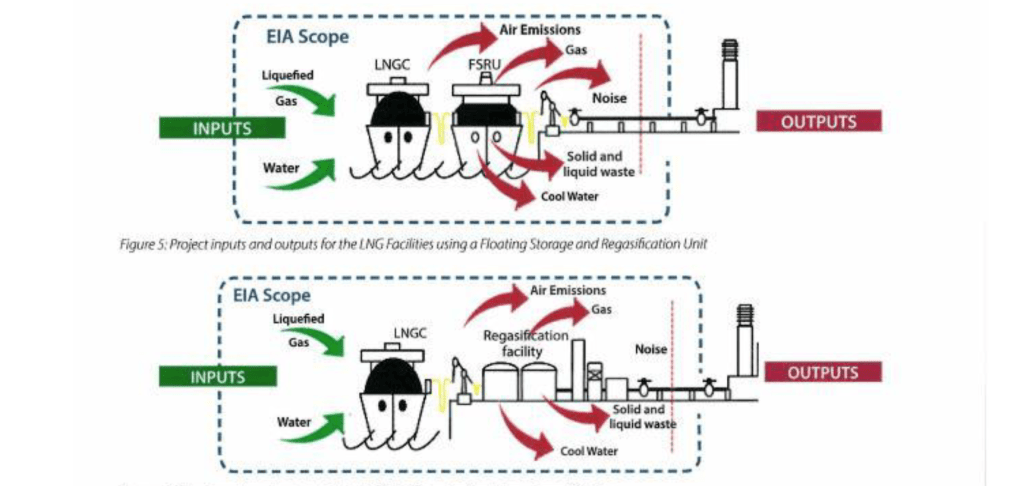 - LNG production process consumes a considerable amount of energy. The energy return on energy invested calculation is often an omission in the EIA process.