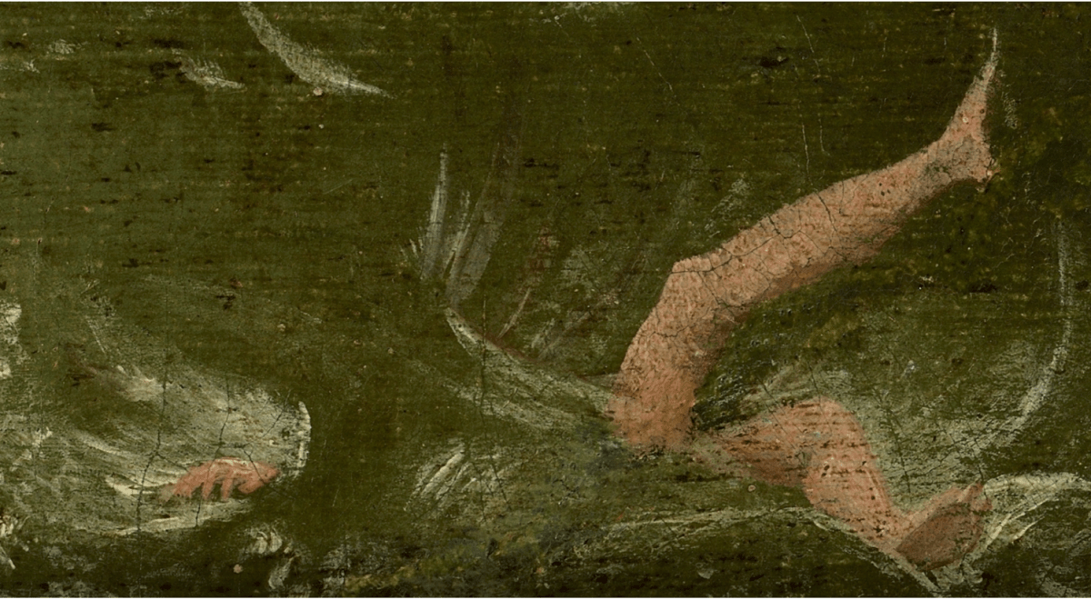 There is, of course, no leopard in this great painting. Instead, looking carefully, you will find the bare white legs of someone floundering upside down, moments before drowning out to sea, while life goes on uninterrupted in the rest of the painting. We will return to this theme of bodies in distress, inversion and compromised subjectivity dissociated from the natural.