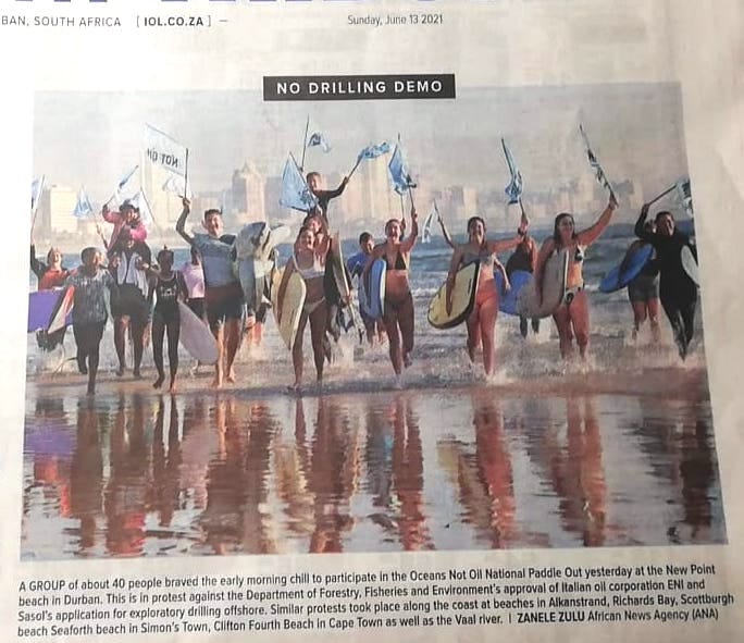 Oceans Day – All along the eastern seaboard of South Africa, South Africans stood together in an action against government approval for offshore drilling. Many are exasperated that this push for oil and gas is at variance with the science that shows more hydrocarbon emissions will push us closer to planetary tipping points and global warming.